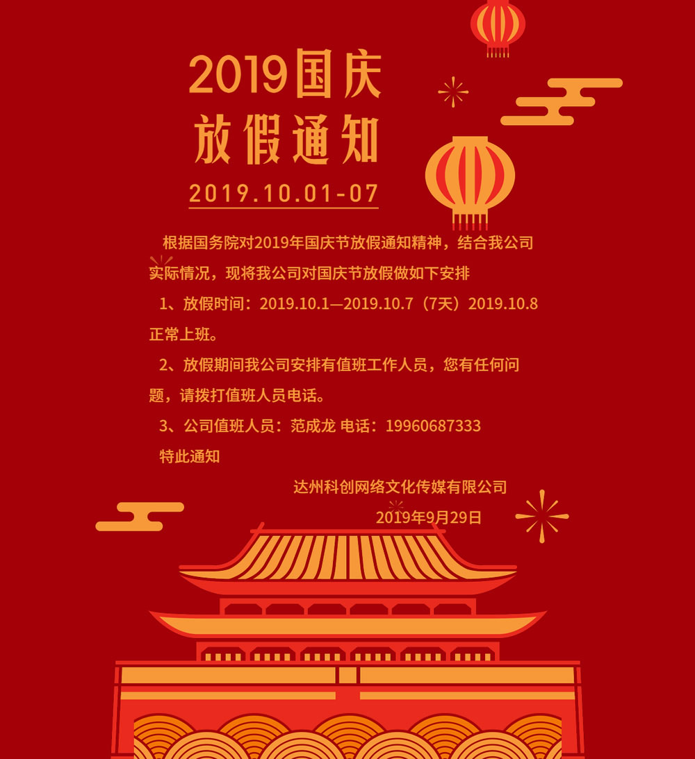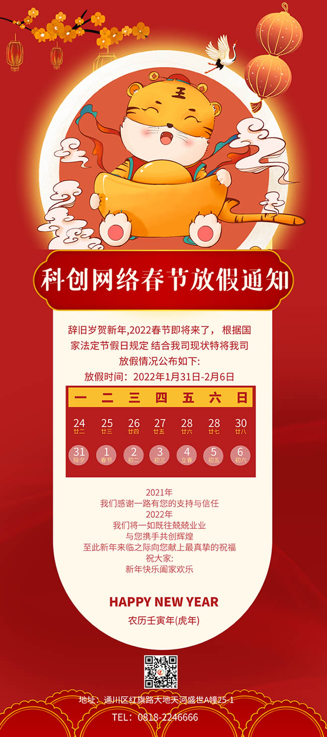 辭舊歲賀新年,2024春節(jié)即將來了, 根據(jù)國家法定節(jié)假日規(guī)定 結(jié)合我司現(xiàn)狀特將我司放假情況公布如下:放假時間: 2024年2月8日-2月18日至此新年來臨之際向您獻上最真摯的祝福 ...